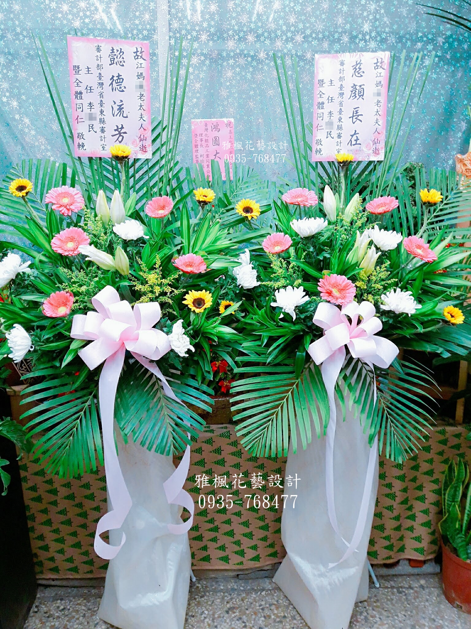 產品名稱:三對以上,一對1800元整(限同時間,同地點送達,可不同落款)田中花店高架追思花籃