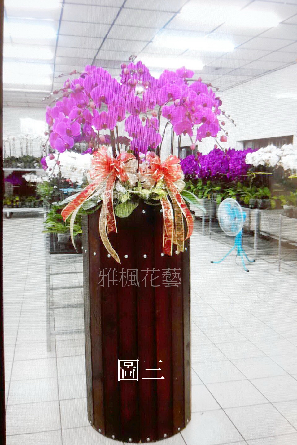 3.蘭花品種與顏色如短缺.將以當季類似品種替換.花盆(器)、籃子或配飾用品,遇缺貨時,將以適當的容器、配飾用品替代使用。