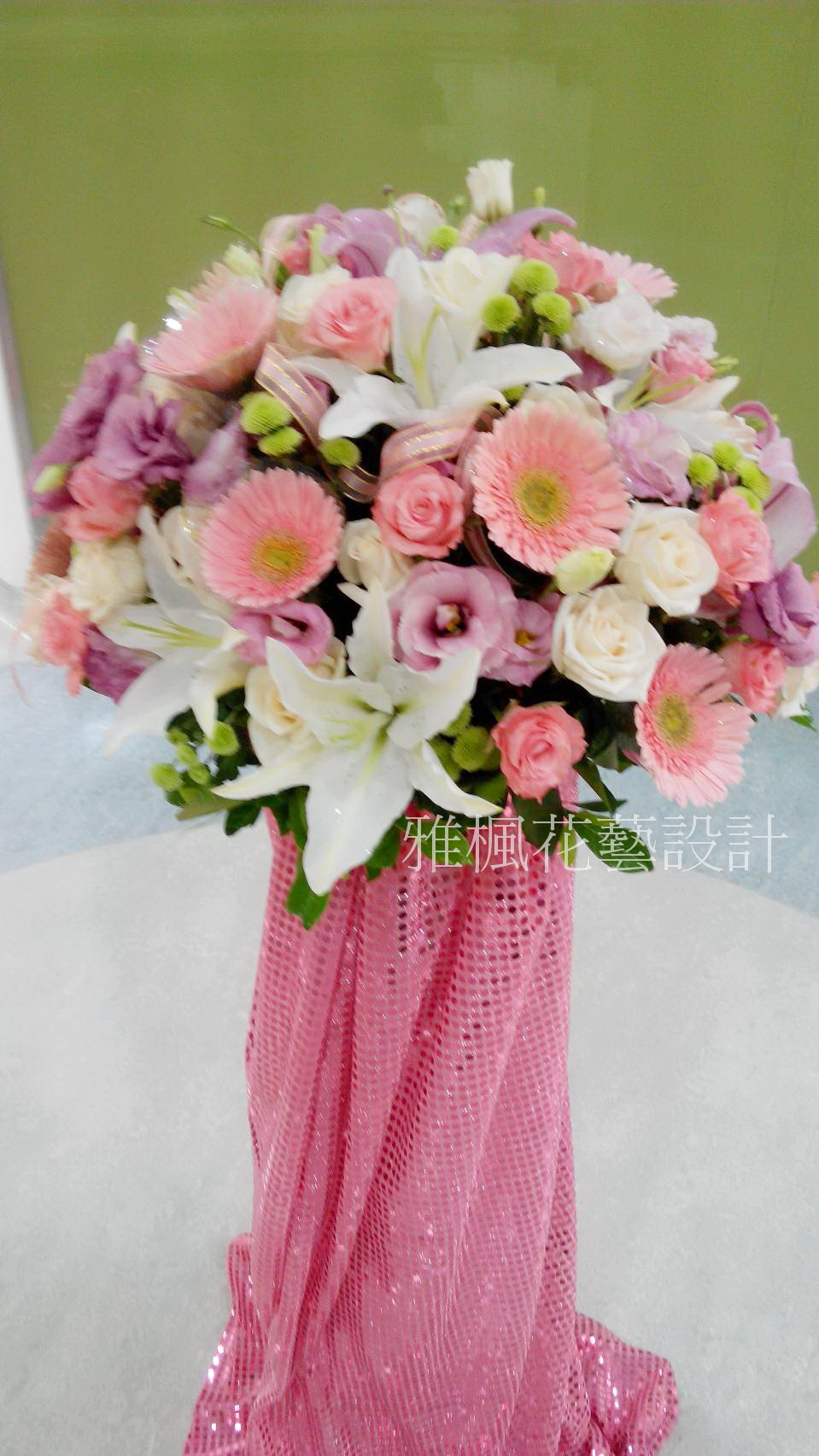 產品名稱:粉色溫柔_走道藝術花籃彰化雅楓花店(適合結婚&文定&新婚_發表會_演講_任何場合都適合)單一柱特價2500元起