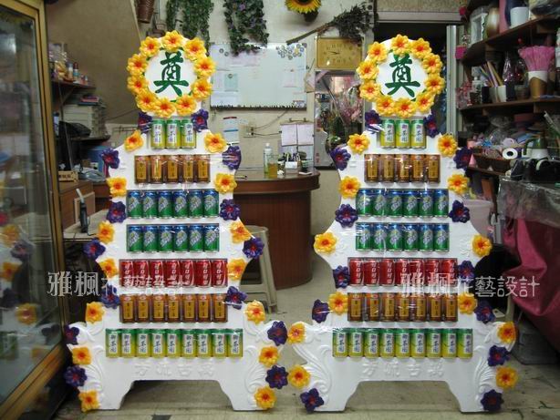 產品名稱:七層罐頭塔&籃_南投花店送殯儀館飲料籃