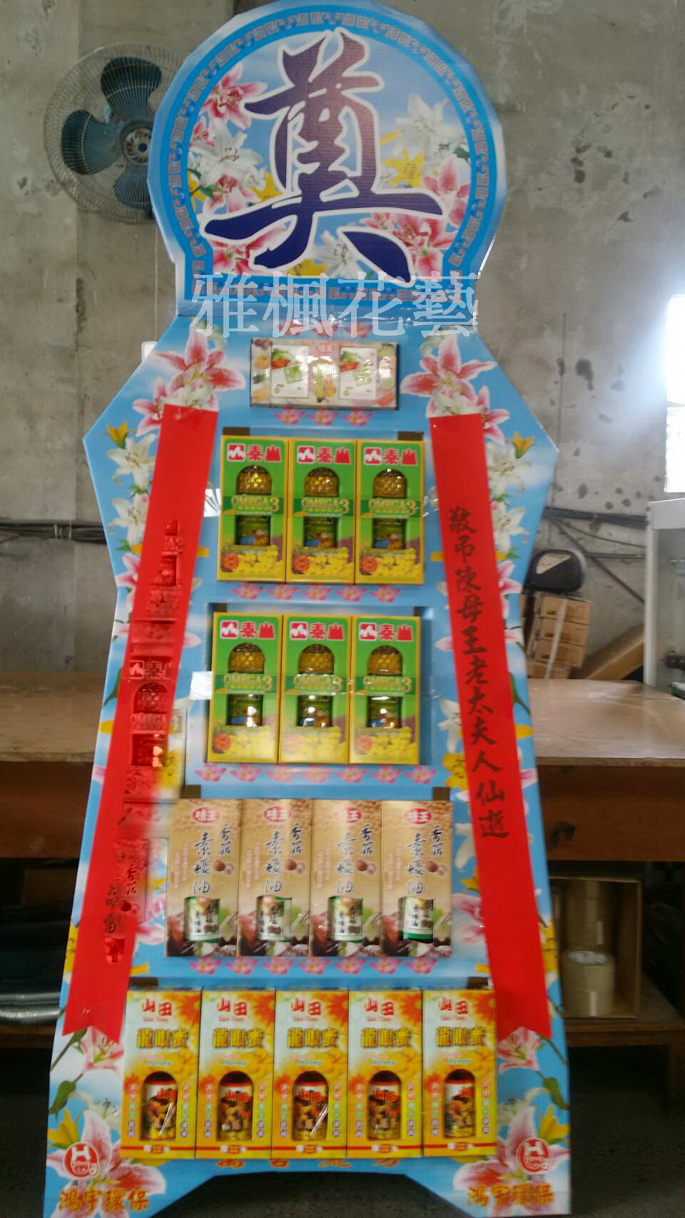 產品名稱:喪事九層罐頭籃(香菇素蠔油禮盒&泰山食用油禮盒&龍眼蜂蜜禮盒..等32-28系列)