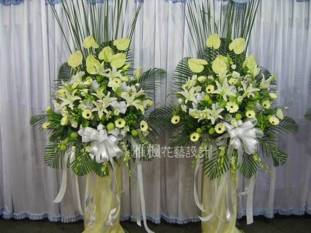 產品名稱:素雅綠白色系大型羅馬花柱_追思喪事場合花柱代送推薦南投市花店雅楓花藝殯儀館外送