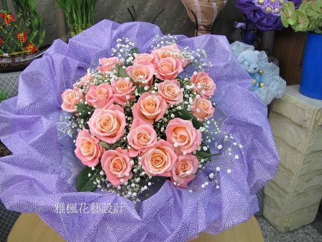 粉愛你色玫瑰20朵,滿天星,緞帶,紗網,高質感包裝紙