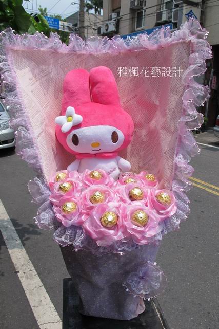 產品名稱:マイメロディ美樂蒂My Melody玩偶_金莎花束_員林花店情人生日花束外送服務