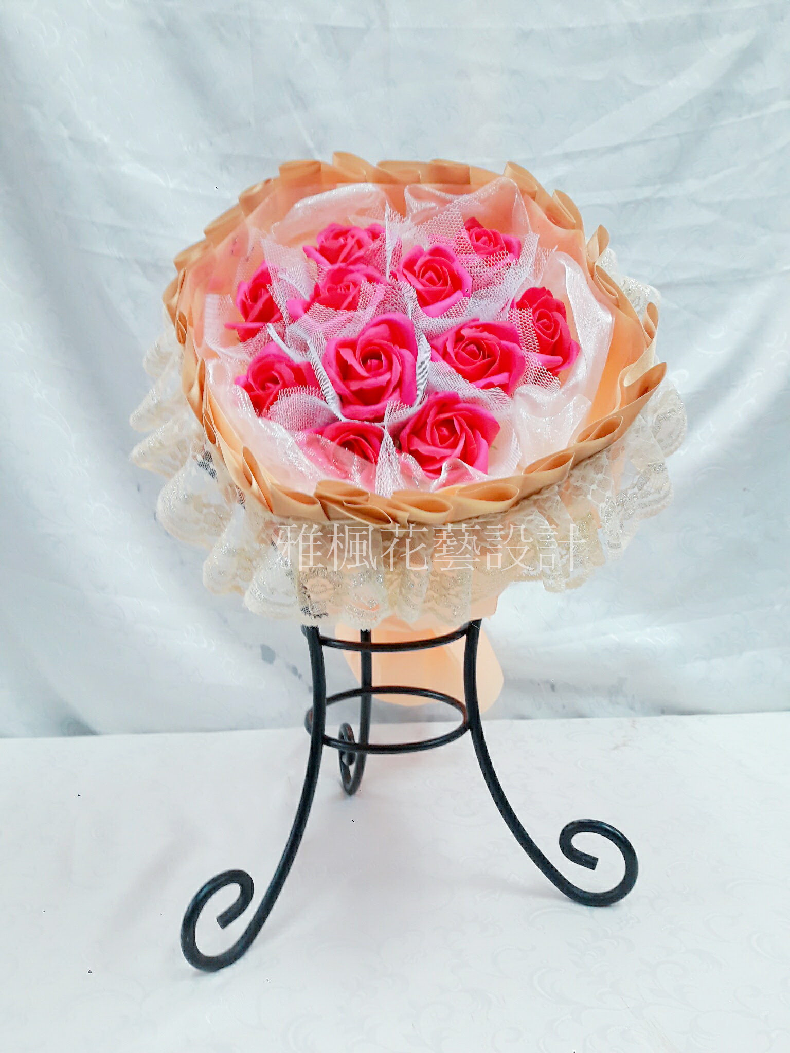 規格:桃色玫瑰特A級11朵,蕾絲,紗網,緞帶,高質感包裝紙