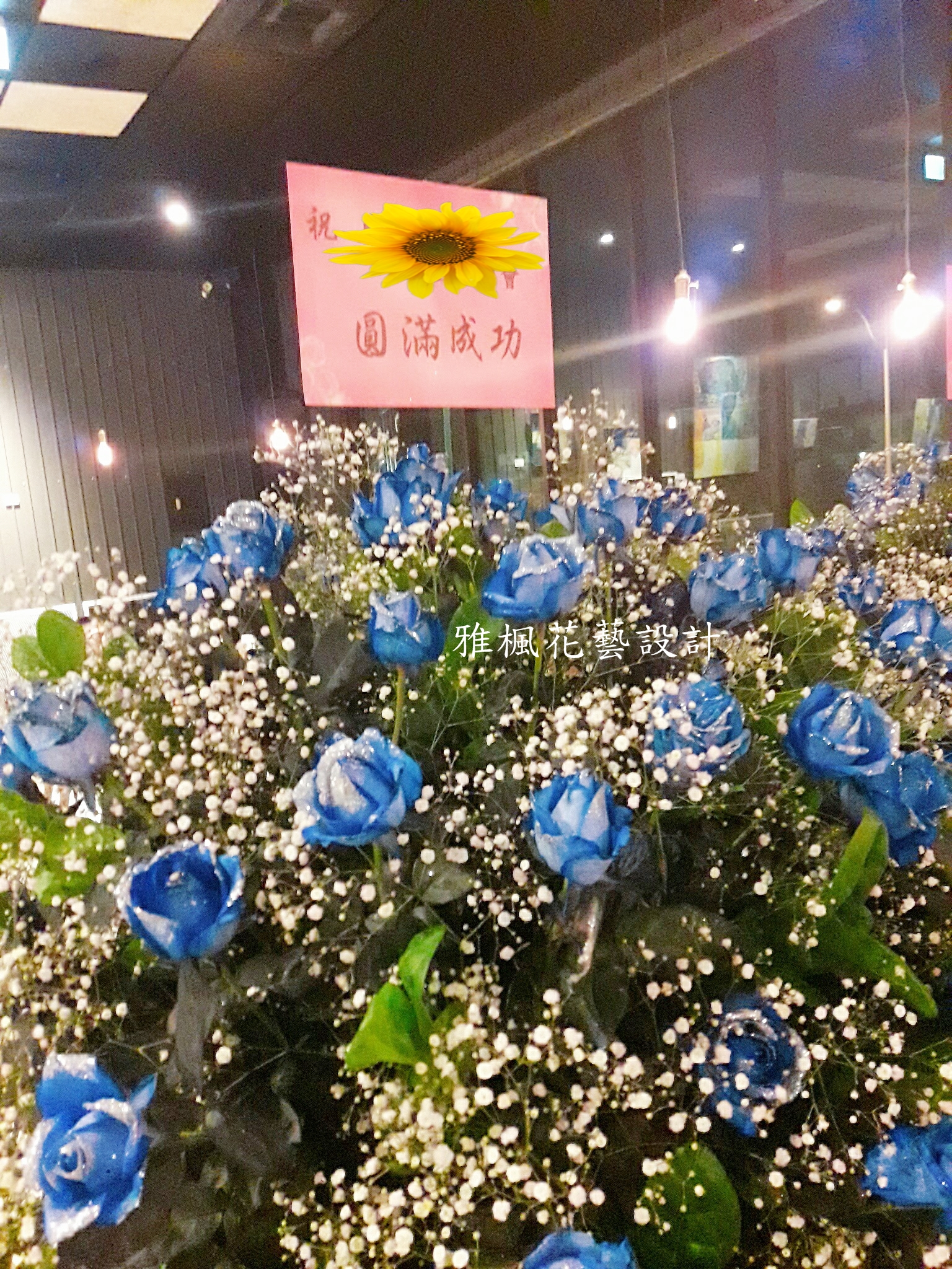 喜歡!!不一樣的感覺!!此產品需提早一星期以上預訂!!如有急單,麻煩請跟我們聯絡0935768477_規格:單一柱台灣藍色玫瑰99朵,滿天星,葉材....等,單一個高約160cm_寬約70cm