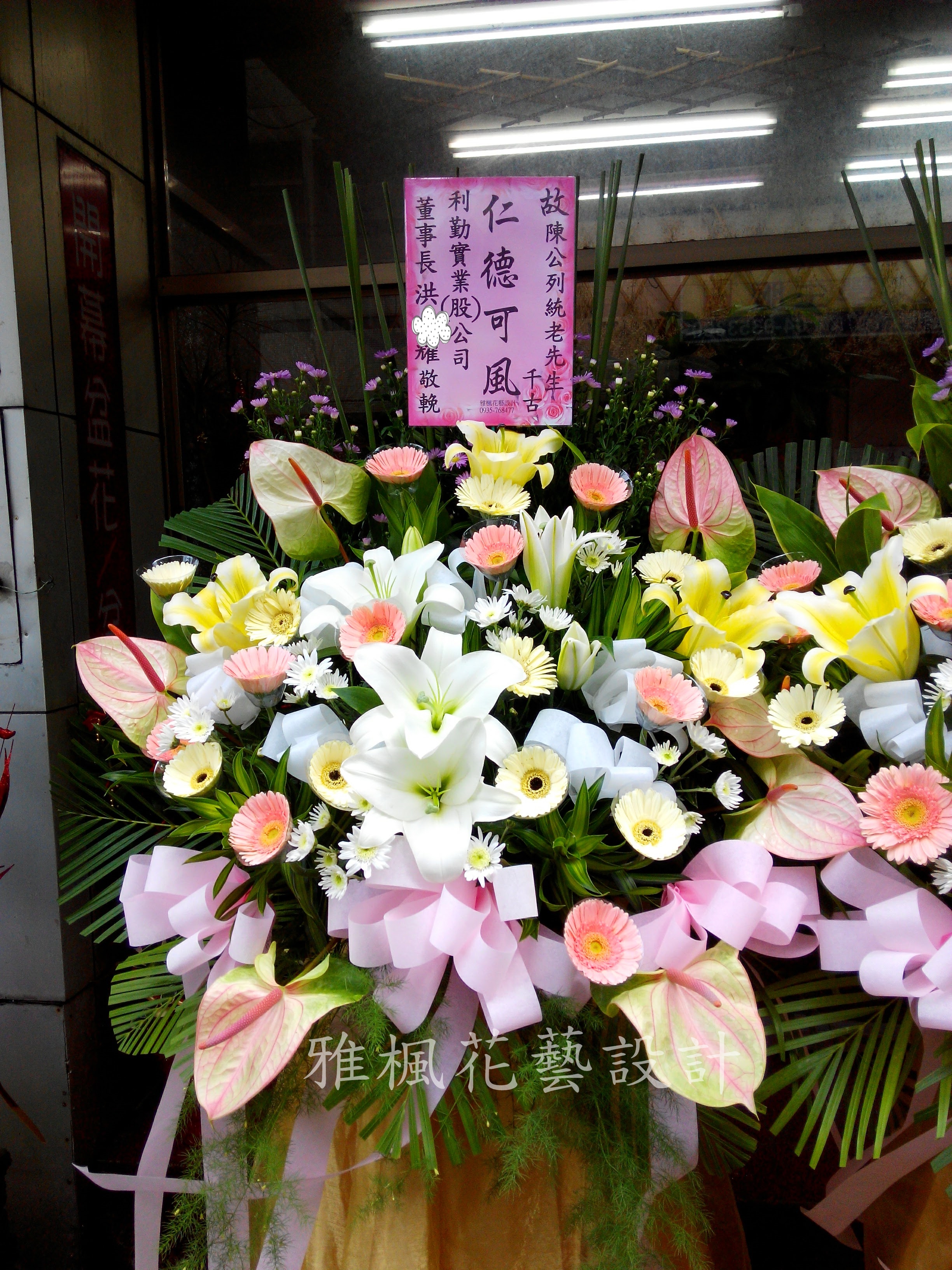 產品名稱:莊重典雅的弔唁追思羅馬花柱_雲林殯儀館外送花禮服務_八德生命殯儀館送花柱