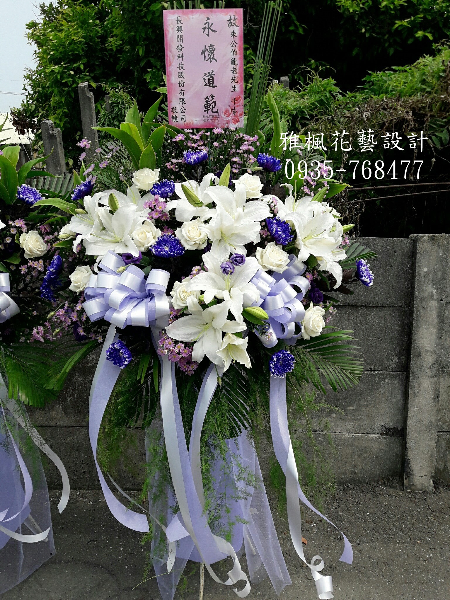 產品名稱:紫白色系典雅高架花籃免費外送服務_鹿港花店雅楓花藝