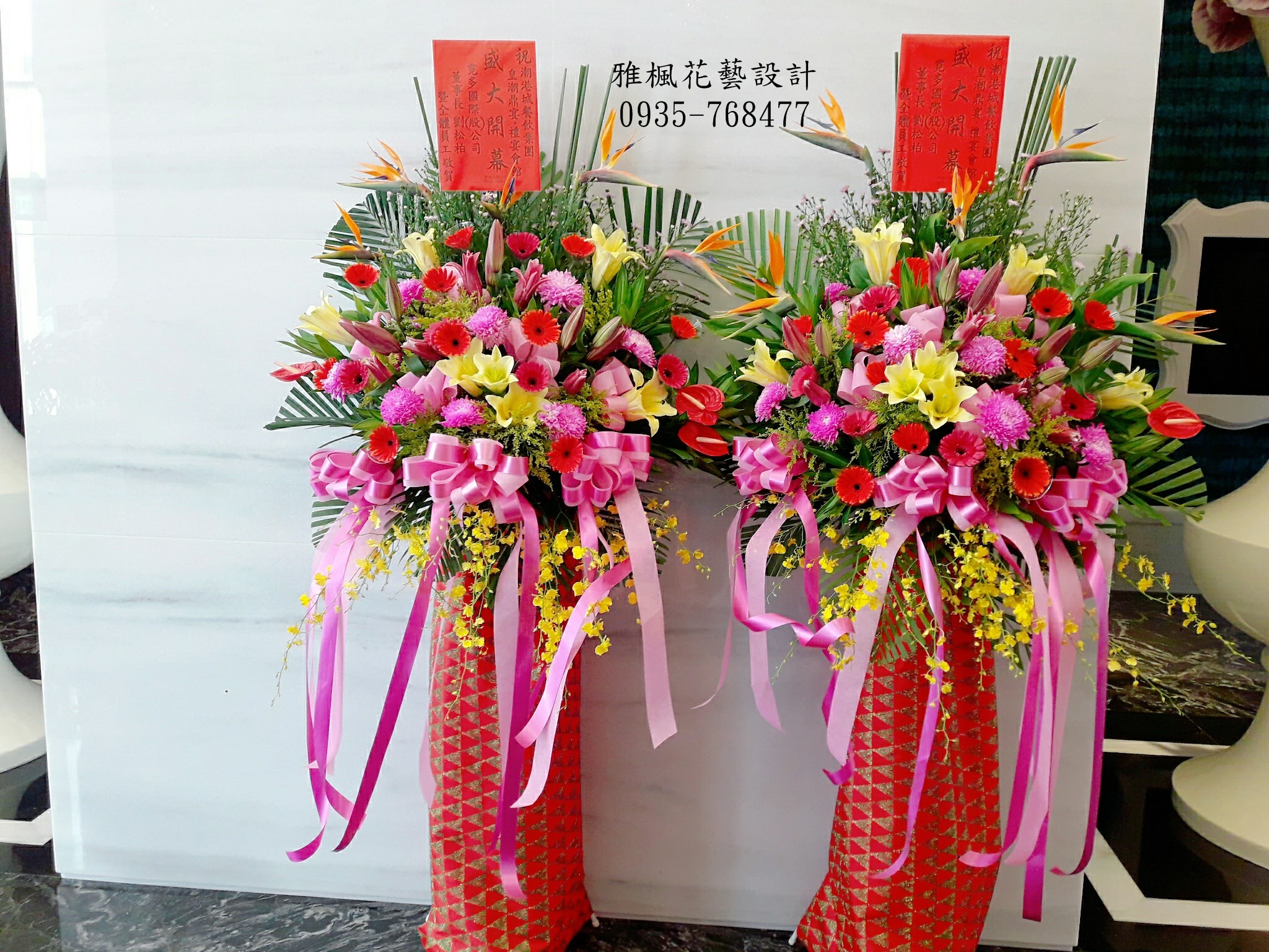產品名稱:美艷再現!!潮港城餐飲集團皇潮鼎宴_禮宴會館員林開幕誌慶,會長交接送花籃推薦員林花店雅楓花藝