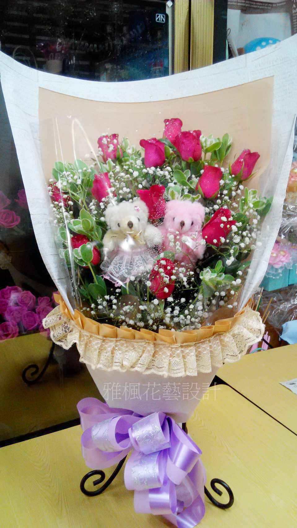 玫瑰,小熊,滿天星,葉材,蕾絲,緞帶,精緻包裝紙......等
