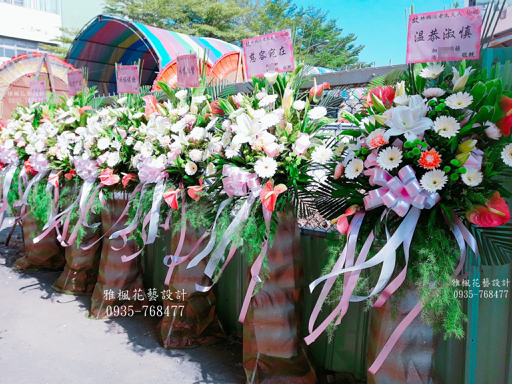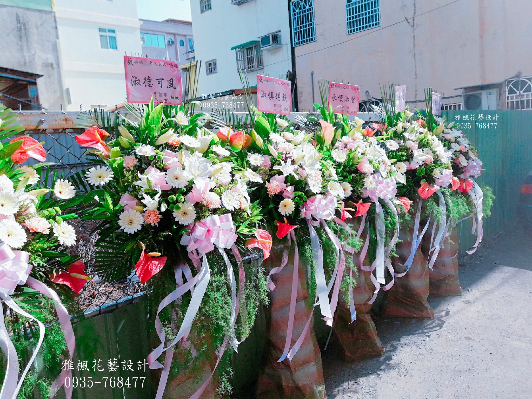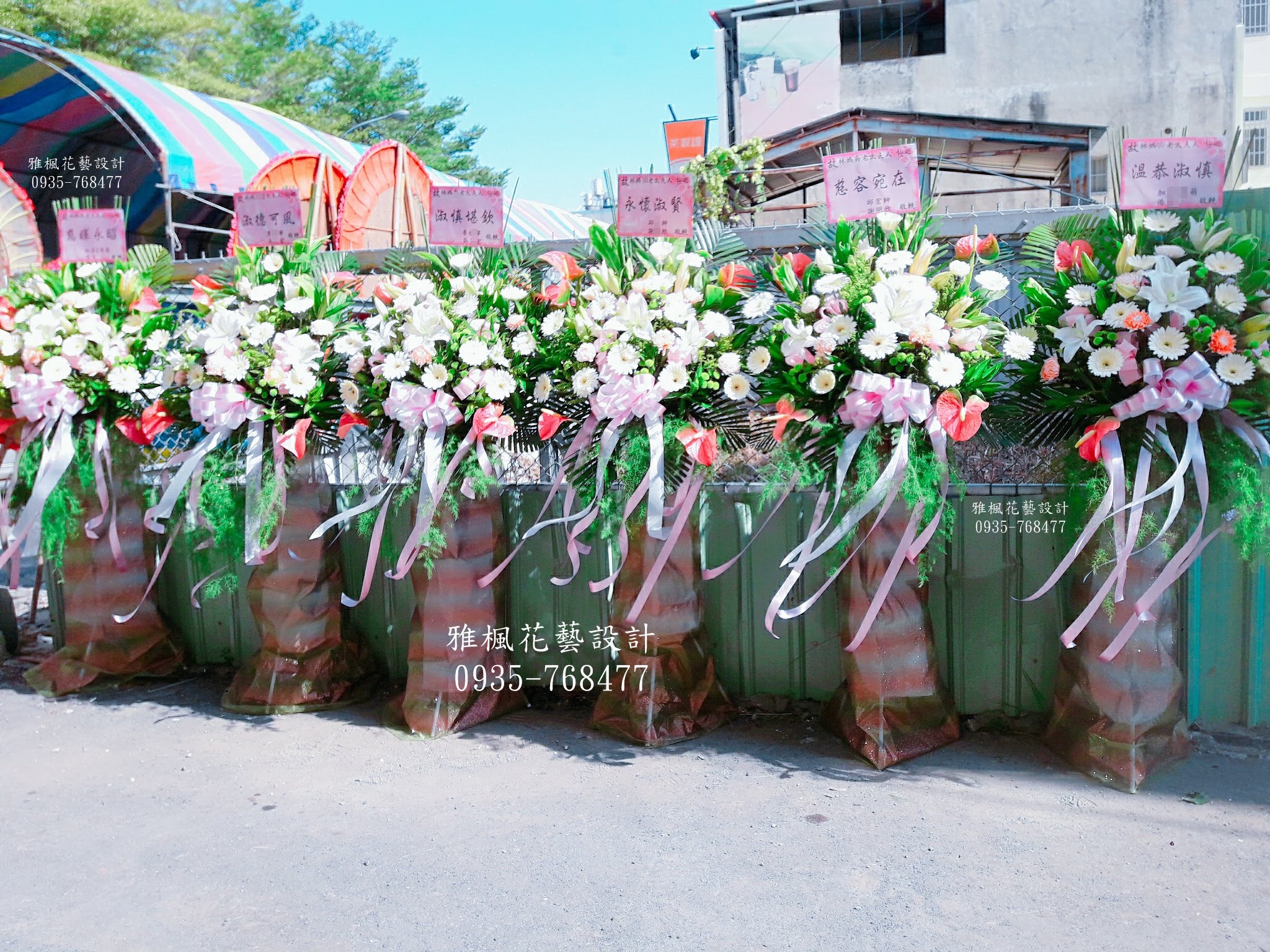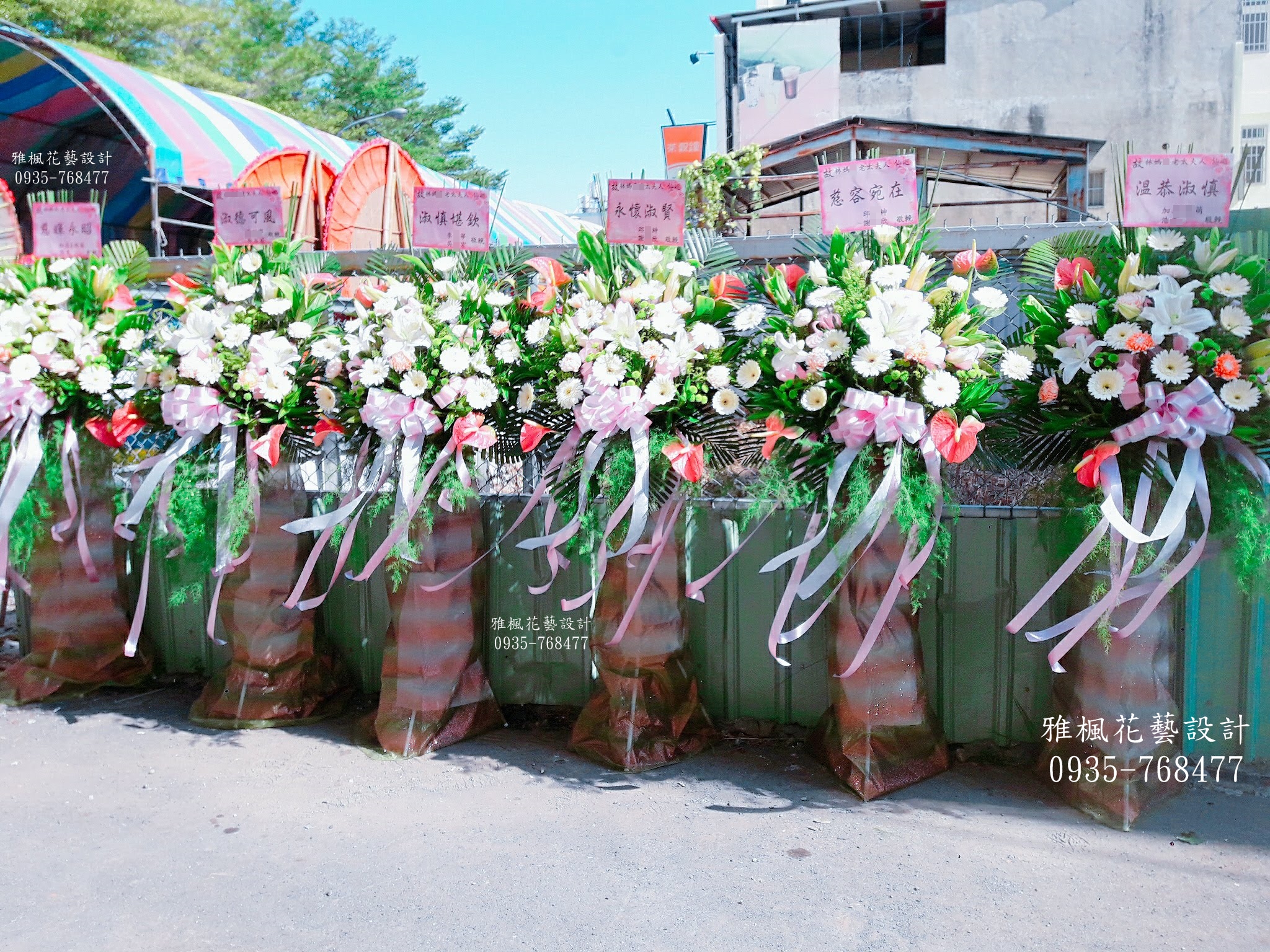 產品名稱:三對以上,一對3150元(限同時間,地點送達,可不同落款)緬懷弔慰_大型高架花籃台中員林草屯斗六花店專車送達